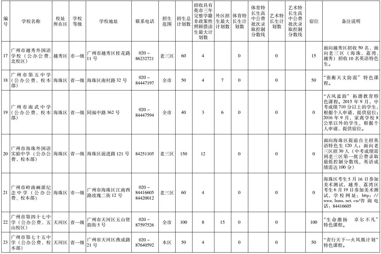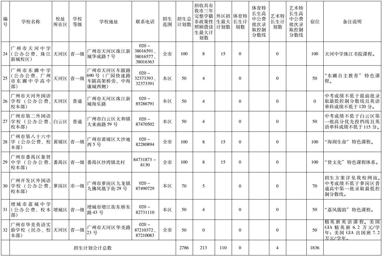 七十五中学、东圃中学、天河外国语——面向天河区招