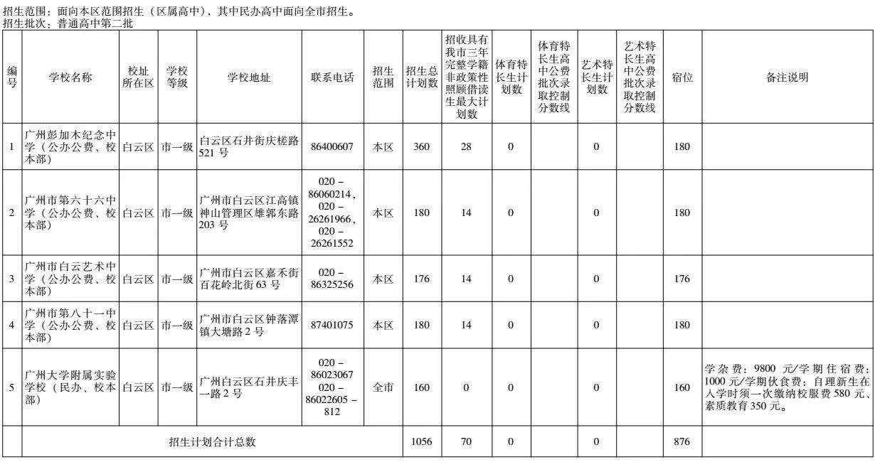 五、白云区普通高中招生